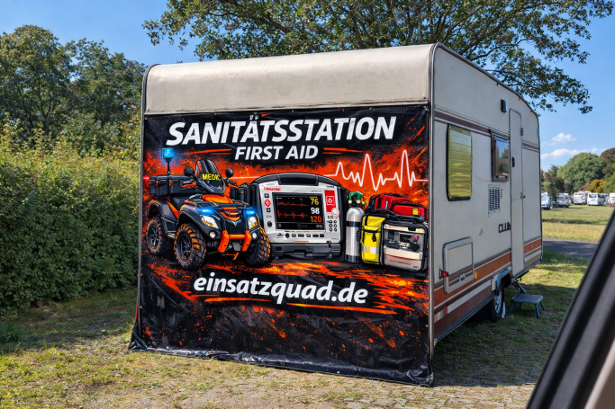 Genau dafür ist unsere Sanitätsstation aufgebaut: als feste, sichtbare und voll ausgestattete medizinische Einheit für Veranstaltungen.