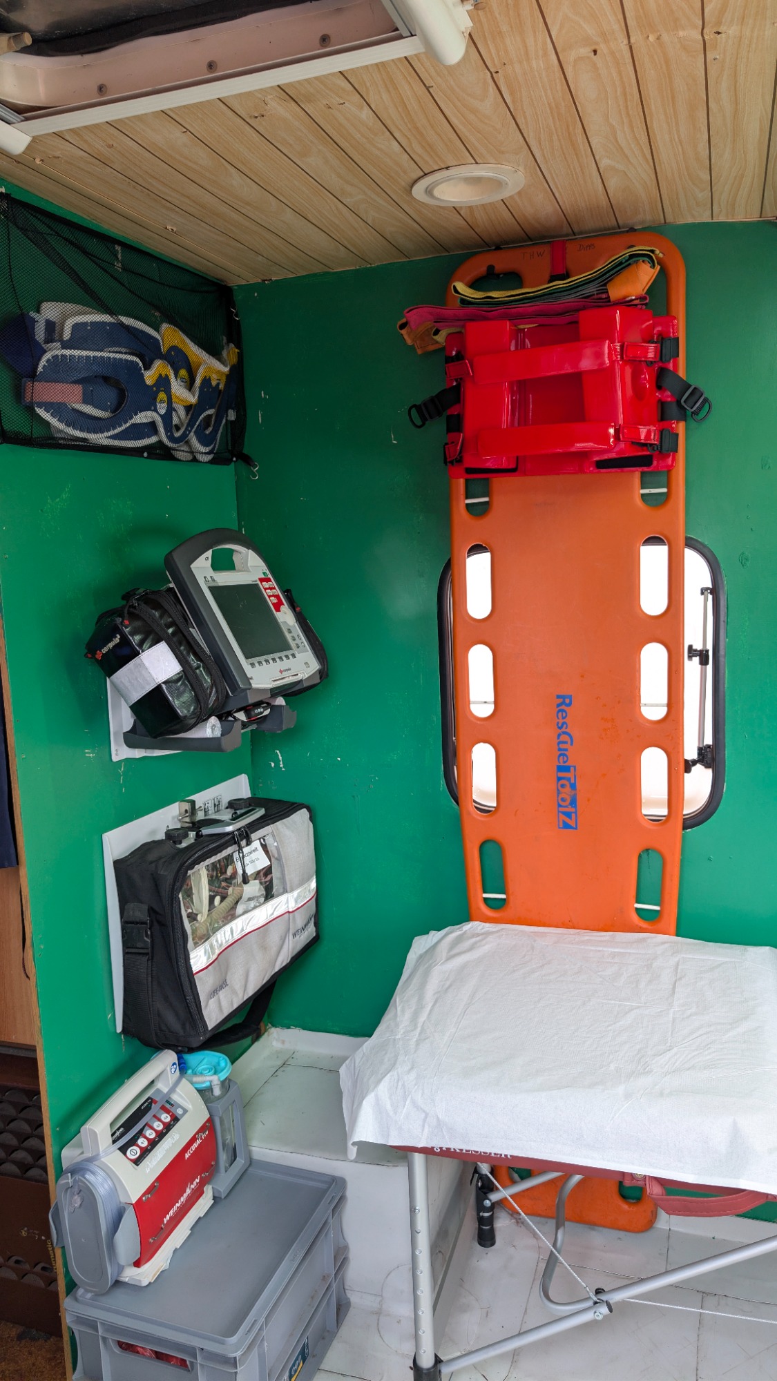Unsere Medizintechnik orientiert sich am Ausstattungsniveau eines Rettungswagens nach DIN EN 1789 – nur ohne die unnötigen Mehrkosten eines zusätzlich abgestellten Transportfahrzeugs.