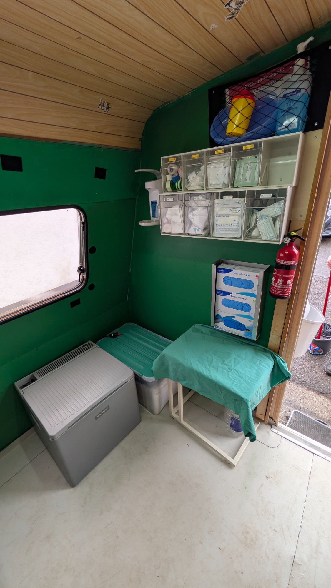 - feste Sanitätsstation für Behandlung, Betreuung und Struktur